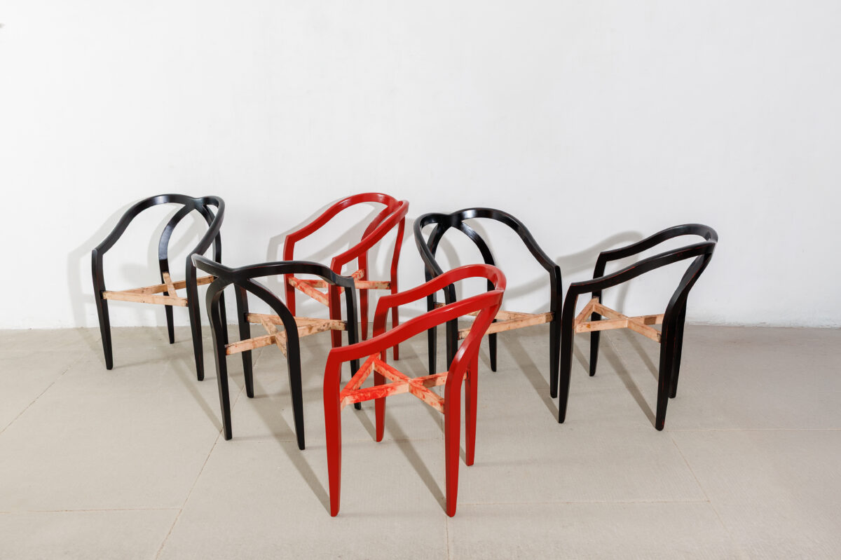 Die Sessel «Crossed Legs» entstanden in Zusammenarbeit mit dem französischen Designer Sylvain Dubuisson. Urushi, der asiatische Natur-Lack ist mein zentraler Werkstoff. Er braucht ein Objekt, auf dem sich diese Technik entfalten kann. Zusam- menarbeit ist dabei essenziell und stets eine spannende Herausforderung.